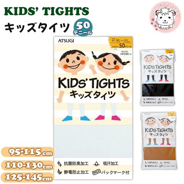 【アウトレット】アツギ キッズタイツ 50デニール 3足セット こどもタイツ キッズタイツ 無地 95-115cm/110-130cm/125-145cm キッズ ジュニア HOT 発表会