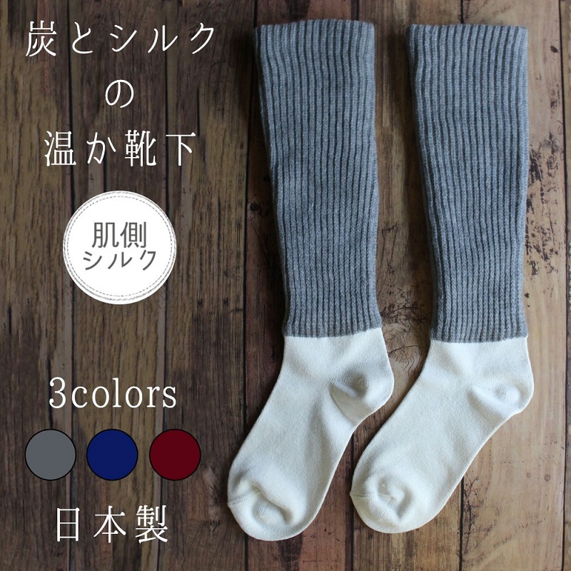炭とシルクのウォームソックス 1足 セラフィック 日本製 乾燥対策 靴下 ぽかぽか あったか 足首ウォーマー 遠赤外線 シルク