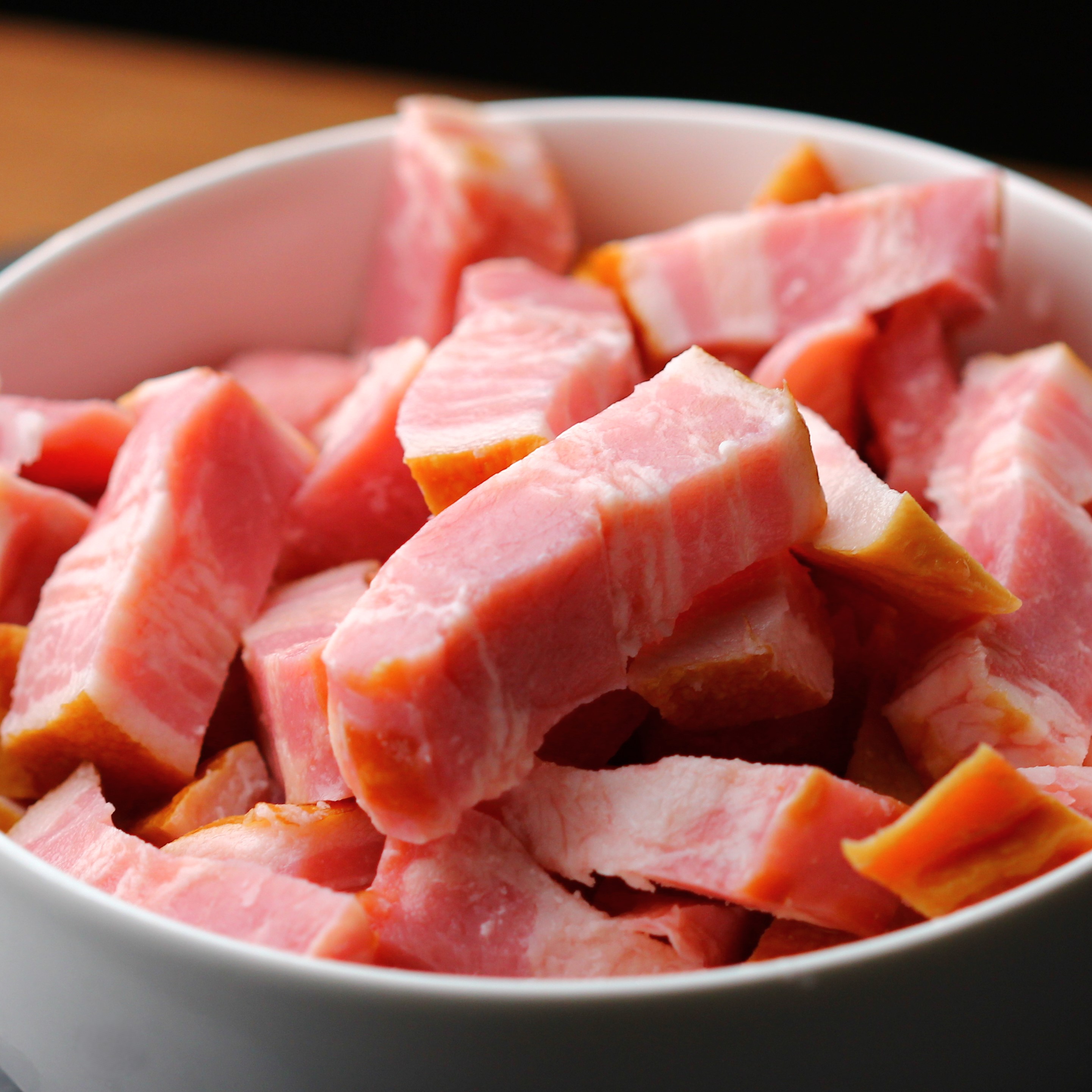 忙しい毎日に最適な、便利な高品質ベーコンをご紹介します。15×15×40mmの角切りにされたスティックタイプのベーコンが500g入りで、包丁いらずで料理に使いやすい!均一なサイズでムラなく火が通ります。パスタ、サラダ、スープ、炒め物など、さまざまな料理にぴったりの一品です。