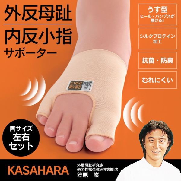 外反母趾サポーター 内反小趾サポーター 両足 左右 日本製 笠原式 カサハラ式 洗える 薄手 抗菌 防臭 蒸れない 親指 小指 肌色 【STK】