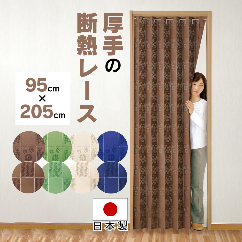 アコーディオンカーテン パタパタカーテン 間仕切り 厚手 幅 95cm × 丈 205cm レース 目隠し 断熱 冷気遮断 保温 日本製 長さ調節 階段 脱衣所 洗面所 78745-10