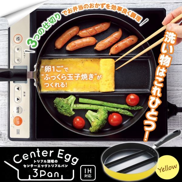 センターエッグトリプルパン 24cm IH 卵焼き器 フライパン 日本製 ガス 丸型 玉子焼き IH対応 ガス火対応 仕切り
