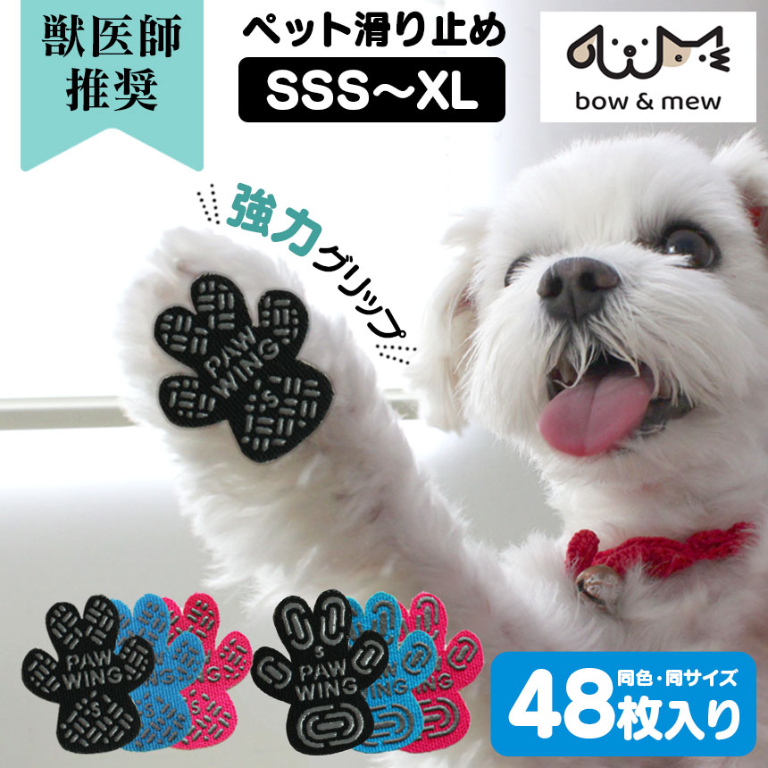 滑り止め 犬 ペット 肉球 シール 48枚 \獣医師推奨/ PAW WING パウウィング Grip plus 犬靴下 bow&mew シリコン 犬用 老犬 後ろ足 フットパッド