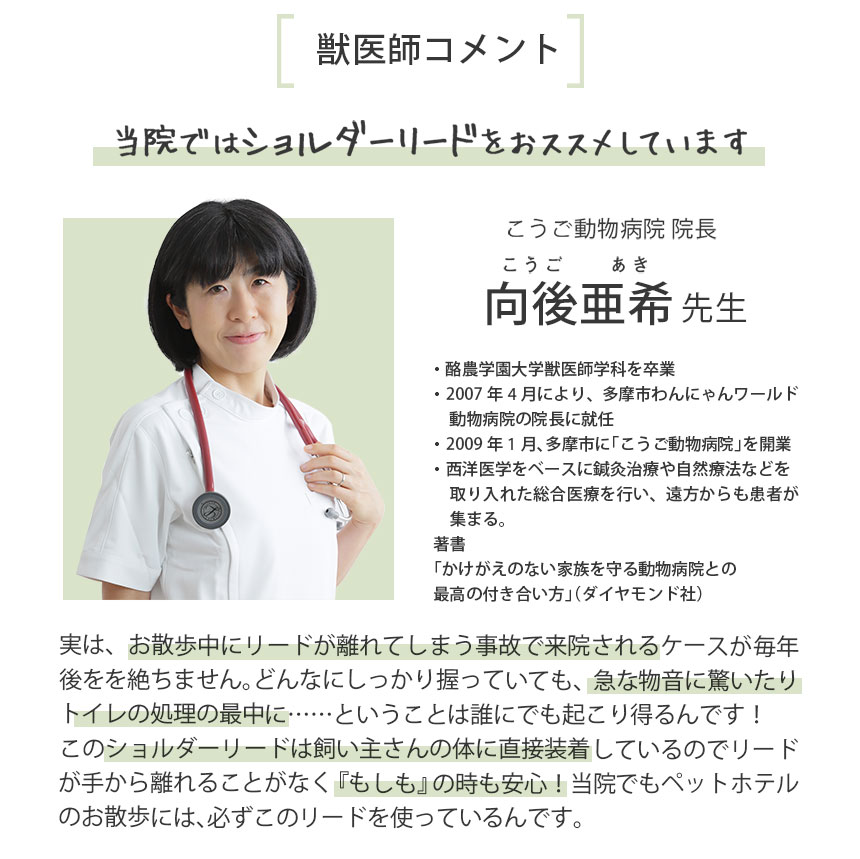 車の運転、アウトドアやお散歩中の一時的な係留に活用できます。