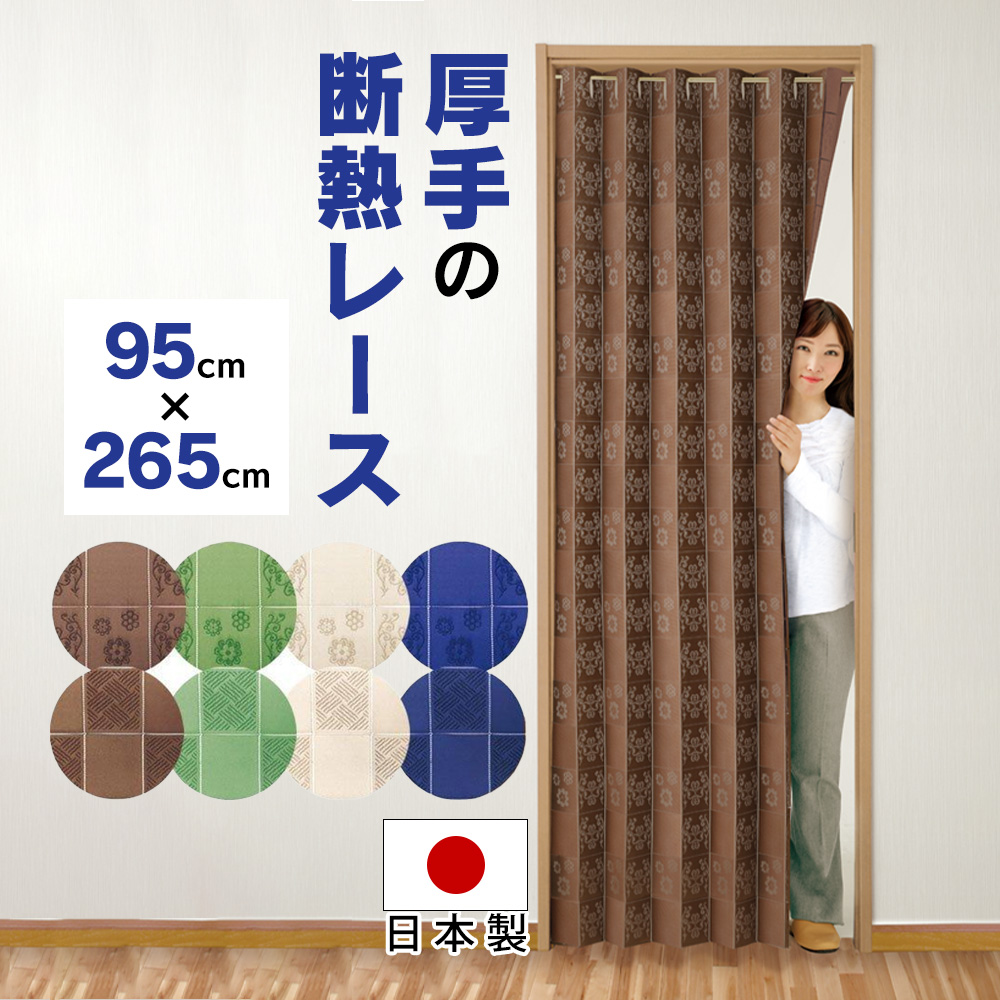 カーテン アコーディオンカーテン パタパタカーテン 間仕切り 厚手 幅95cm × 長さ265cm レース 目隠し 断熱 長さ調節 階段 脱衣所 洗面所 78745-30