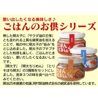 ![]() 【はじめての方にオススメ!】 『明太子』、『明太ちりめん』、『とりそぼろ明太』の3種を食べ比べ。 1,620円(税込) | ![]() 【旨味を閉じ込めた油漬け】 【明太子だけを楽しみたい方に】 1,620円(税込) | |