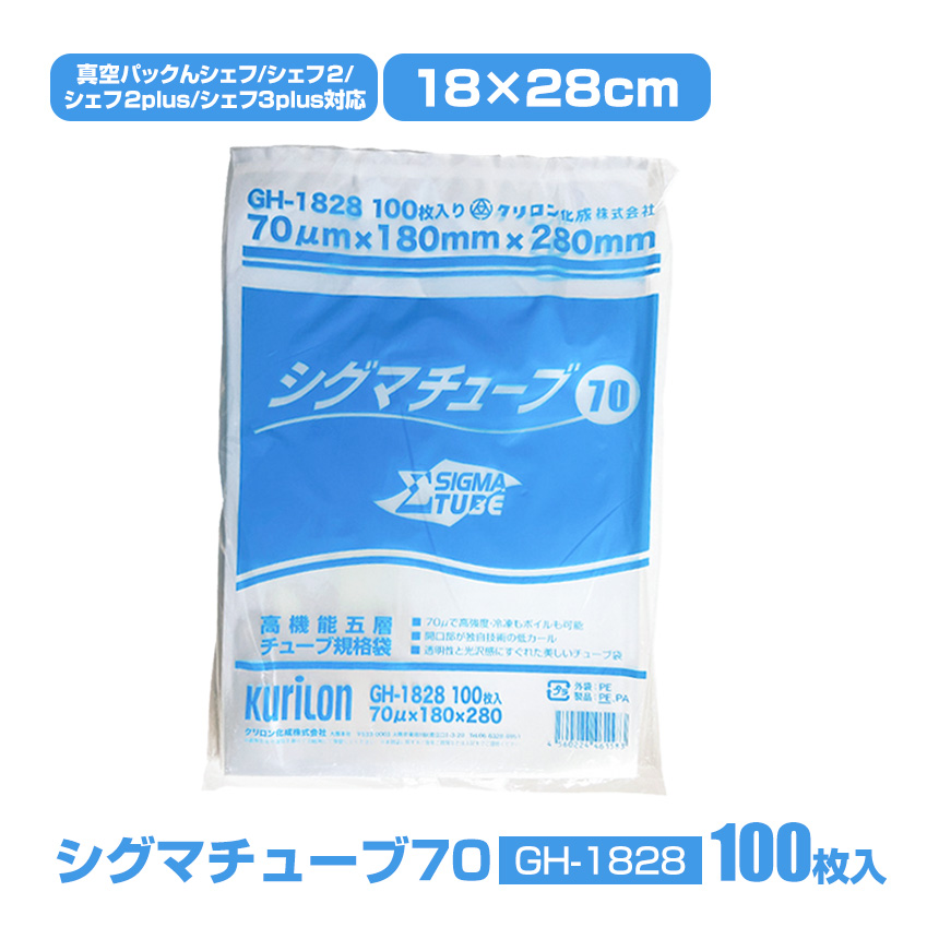 真空パックんシェフ3plus 袋 真空袋 100枚 シグマチューブ70 GH-1828 真空パックんシェフ 真空パックんシェフ2 真空パックんシェフ2plus