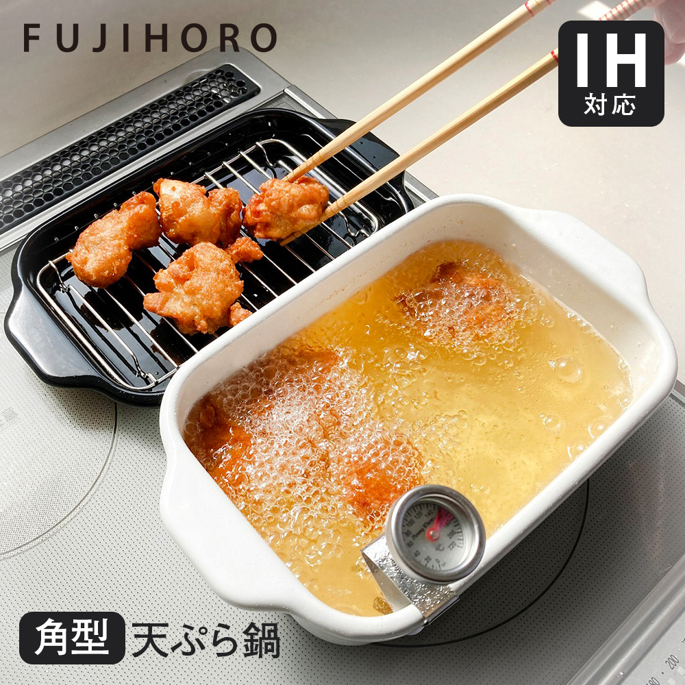 富士ホーロー 天ぷら鍋 角型 四角 ホーロー 琺瑯 コンパクト スリム 少ない油で揚げ物ができる 省スペース ホワイト 白