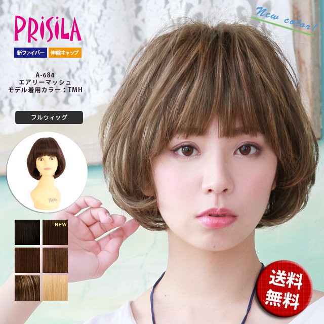 プリシラ A-684 フルウィッグ エアリーマッシュ A-661がリニューアル プリシラ ウィッグ ショート日本製耐熱ファイバー