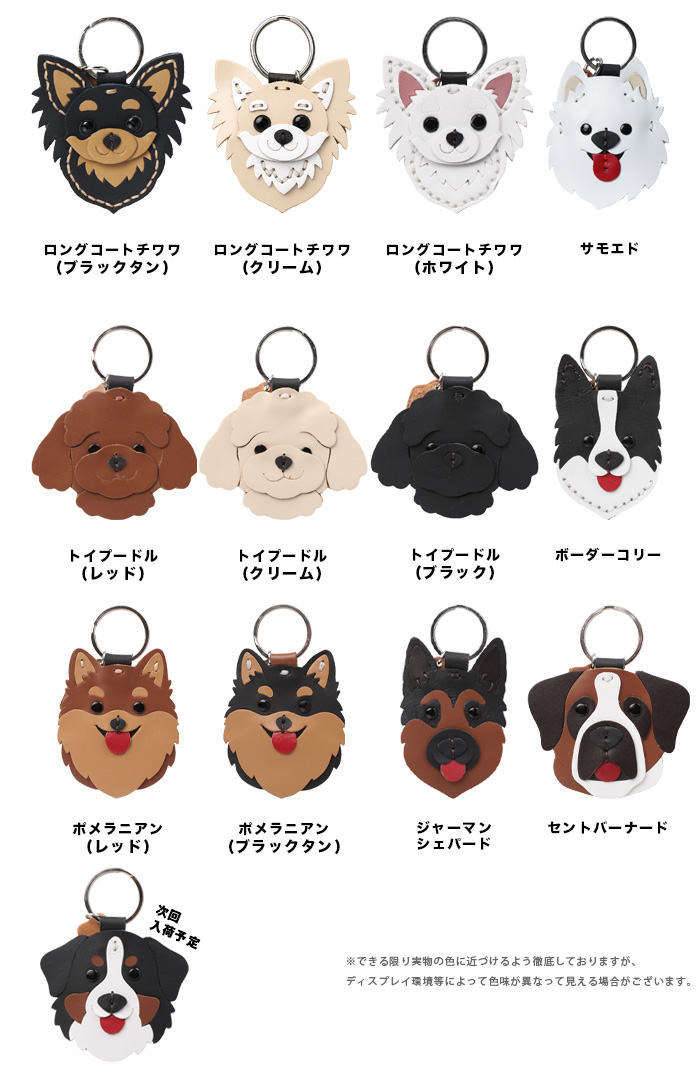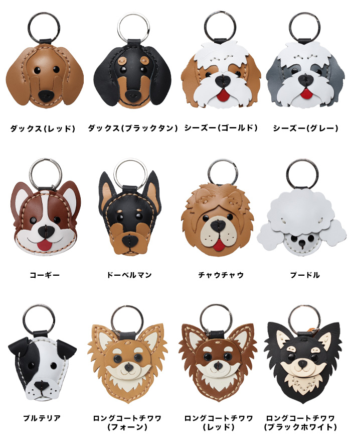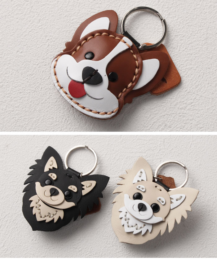 バッグや小物を華やかに彩る、37種類の犬型キーホルダー(本革)です。バッグや財布の製作過程で余った素材を活用した、環境にやさしいエコフレンドリーデザインです。柴犬、 トイプードル、ハスキー、シュナウザー、チワワ、フレンチブルドッグ、ビーグル、ゴールデンレトリバー、ダックスフンド、シーズー、プードルなど、全24犬種の中からお好きなデザインをお選びいただけます。鍵やバッグのチャームとしてはもちろん、ペット用バッグのアクセントにもぴったり。ご家族やご友人へのプレゼントにもおすすめのアイテムです。