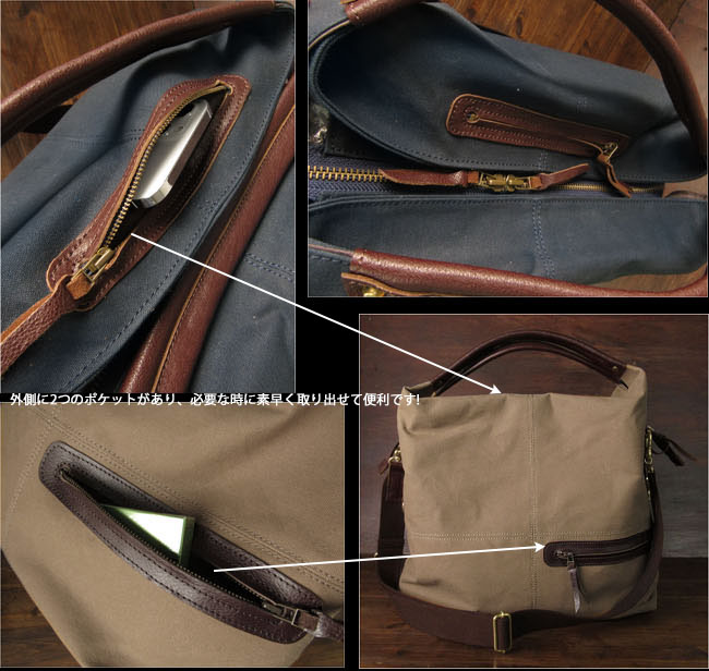 こちらのボストントートバッグは、荷物が少ない時でも型崩れしにくく、1〜2泊分の荷物を収納できる容量があります。持ち手部分にはクッション性のある本革(雨に強いタンニン鞣しの本革を使用)を採用しています。ショルダー、ワンショルダー、手提げの3WAYで活用できる便利なアイテムです。ビジネスカジュアルやカジュアル、旅行など、さまざまなシーンで活躍し、どんなライフスタイルにも合わせやすいデザインです。