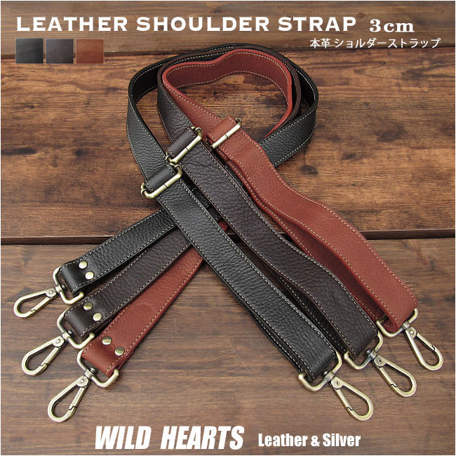 本革 レザー ショルダーストラップ 3cm ショルダーベルト ストラップ 革 ブラウン/ダークブラウン/ブラック/茶色/黒 (ID st142r48)