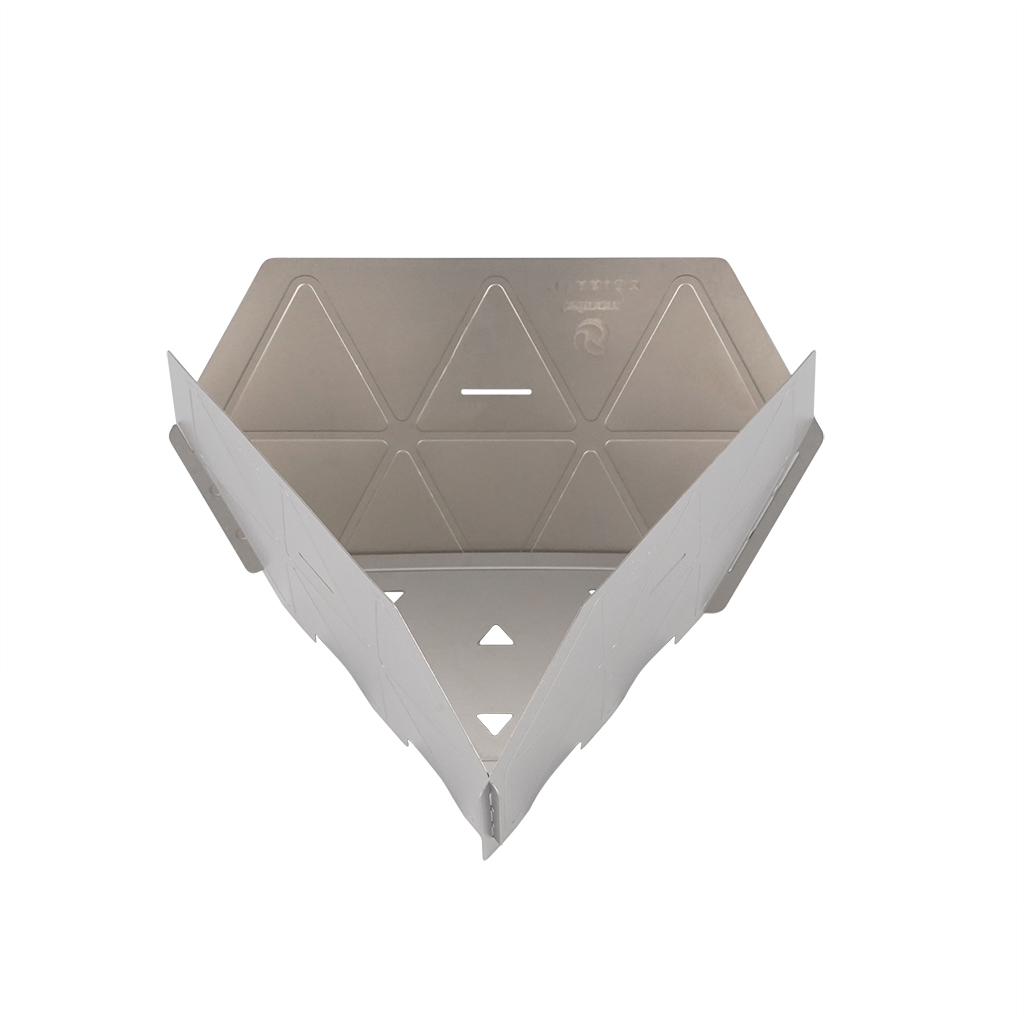 アルコールストーブや固形燃料などに使えるチタン製の風防兼五徳です。