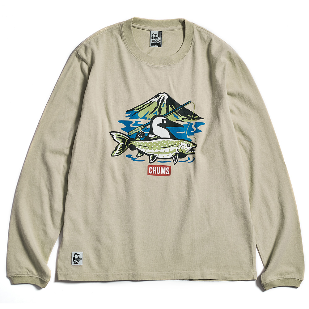 特徴【 チャムス×ジョインター 】コラボフィッシング柄 ロングスリーブTシャツ●チャムスのシンボル「ブービーバード」が釣り人に扮している、