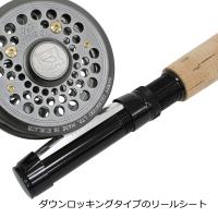 ●渋めのグランクスカラーに合わせたリールシートはブラックカラーのアルミ製ダウンロックタイプ