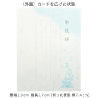 葬儀後のお礼状、香典返しに添える挨拶状カード。感謝・お礼の気持ちを伝える文章が印刷されたカードタイプの挨拶状です。文章が印刷されている商品になります(文字は薄墨です)。そのまま返礼品に添えてご使用いただけます。お客様にて、お名前やお言葉を記入いただきご使用もいただけます。挨拶状のサイズ(折った状態:横 約7.4cm 縦 約17cm 広げた状態:横 約13cm)。長4封筒より小型サイズになります。挨拶状が数枚必要、小さめの挨拶状、もう日にちがない、そん