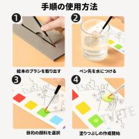 【優れたデザイン】:水彩絵の具を水彩本に配置するこのデザインは、複数の絵の具を持ち運ぶためのスペースを節約するだけでなく、ペイントプロセスをよりシンプルかつ効率的にします。水を用意し、直接水彩本を開いて絵の具に浸すだけで作成できます。別途パレットや絵の具箱を用意する必要はありません。
