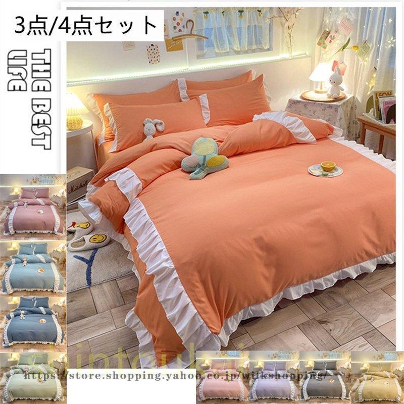 布団カバー 3点セット 可愛い シングル フリル ベッドシーツ ボックスシーツ おしゃれ 寝具カバーセット 掛け布団カバー 敷き布団カバー 姫系 洗える