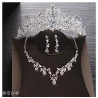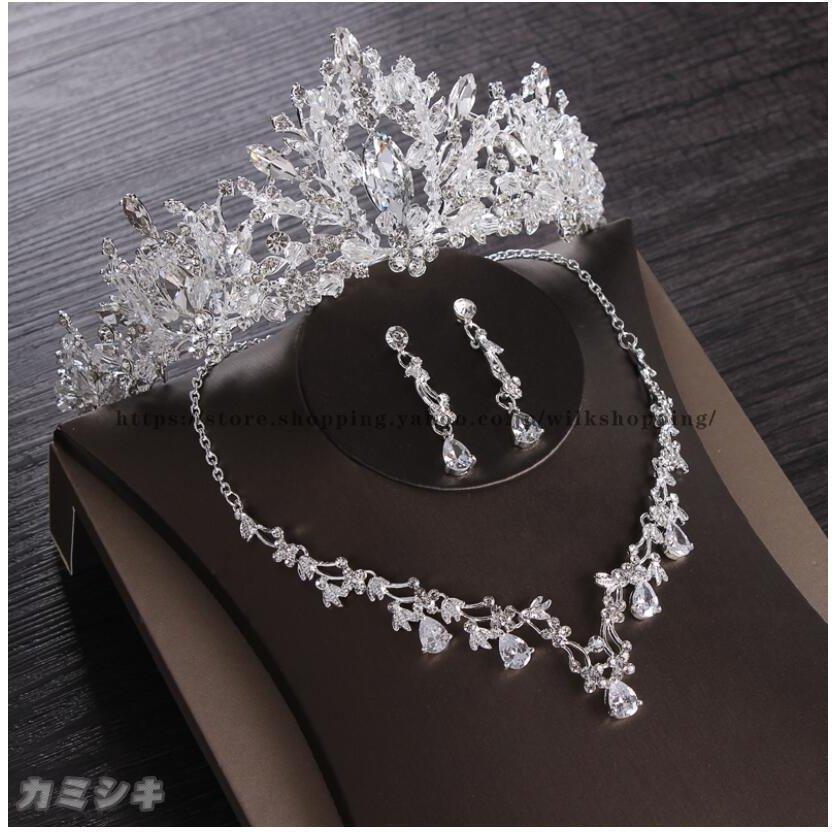 ブライダル小物 アクセサリー 2021新作 ウェディング小物 ティアラ ネックレス ピアス/イヤリング 上品 大人 3点セット 結婚式 花嫁 パーティー 披露宴 二次会