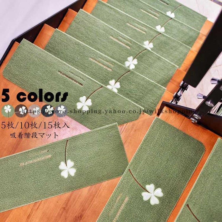 階段マット 吸着 蛍光 滑り止め 折り曲げ 防音 四つ葉柄 おしゃれ 蓄光式 足冷え 介護 高齢者 転倒防止 洗える キズ防止 5/10/15枚組 おくだけ吸着 ずれない 5色