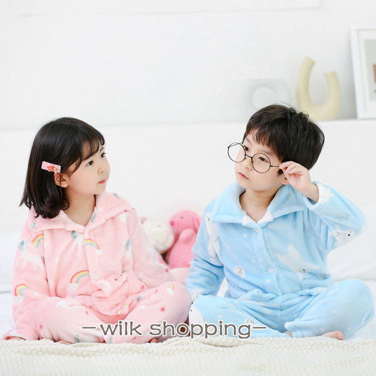 フリース もこもこパジャマ ルームウェア 部屋着 前開き 秋 冬 可愛い あったか 長袖 ロングパンツ セットアップ キッズ 子供 女の子 男の子 プレゼント ギフト