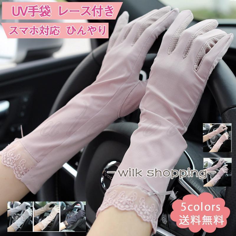 UV手袋 レディース グローブ レース付き スマホ対応 花柄 薄手 UVカット ひんやり 紫外線対策 日焼け止め 滑り止め 運転 21年夏新作 きれいめ おしゃれ