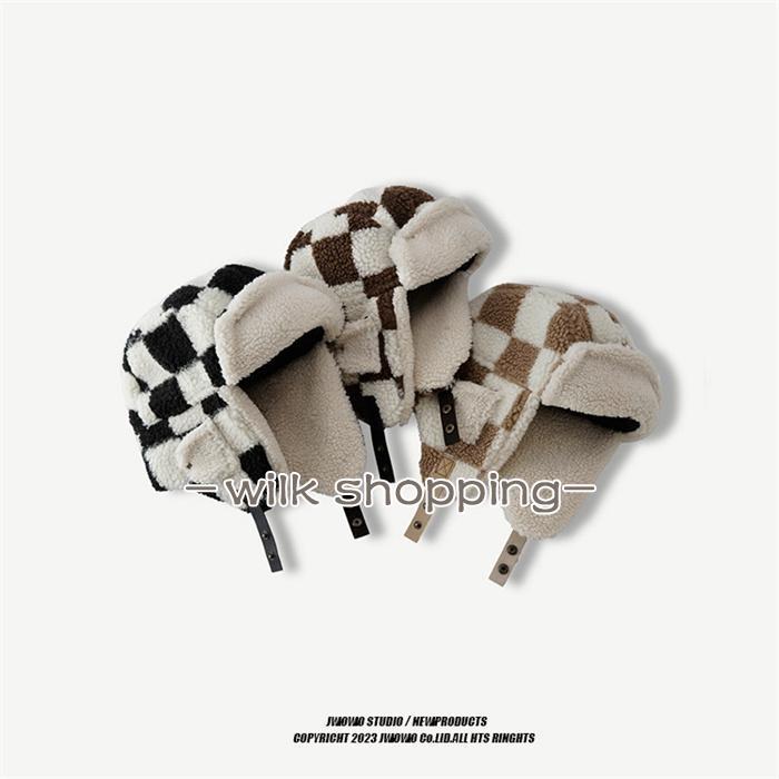 フライトキャップ 防寒帽子 メンズ レディース 男女兼用 チェック柄 パイロットキャップ 防寒帽子 ロシア帽 耳当て付き ファー帽子