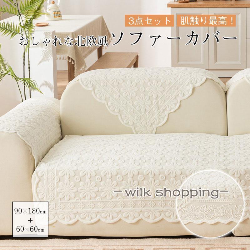 三点せット レース ソファーカバー 北欧風 ソファー ペット かわいい 北欧 おしゃれ ペット対策 オールシーズン ソファー保護 高品質 マット