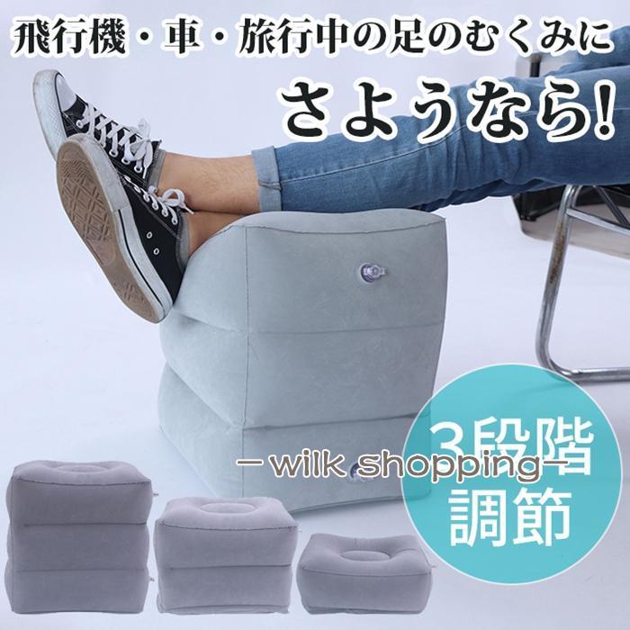 フットレスト 足枕 3段階 高さ調節 飛行機 エアークッション 足置き 旅行 エアー 空気 オットマン 電車 バス 車 快適グッズ 旅行小物 持ち運び