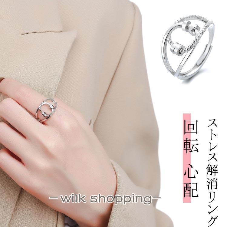 リング ストレス解消リング ステンレススチール ストレス解消 リング 不安 ビーズ付き 可動ランナー ジュエリー ユニ 調節可能 回転 心配 心のリラ