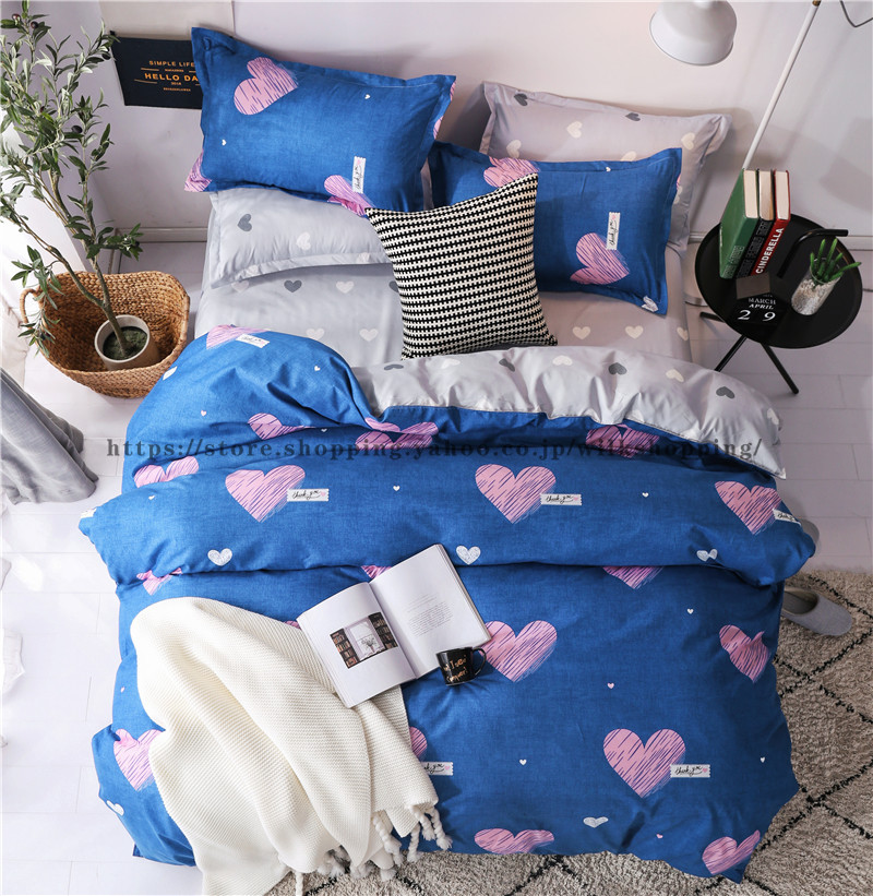 【サイズ4点セット セミダブル】布団カバー:170*210cm(1) ボックスシーツ:12*210+2cm(1) ピロケース:46x63cm(2)