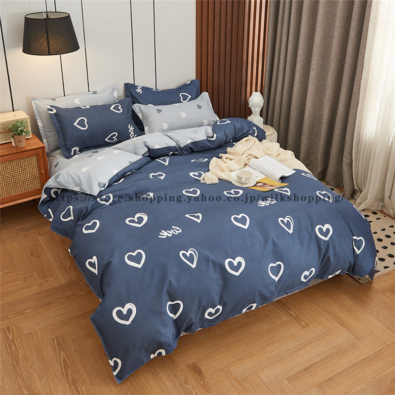 【サイズ4点セット セミダブル】布団カバー:170*210cm(1) ボックスシーツ:12*210+2cm(1) ピロケース:46x63cm(2)