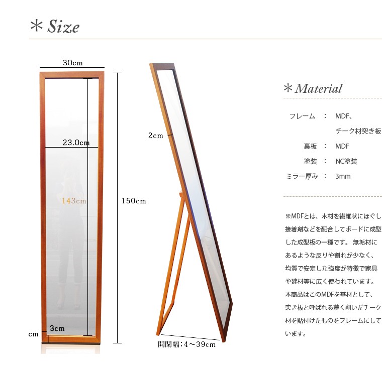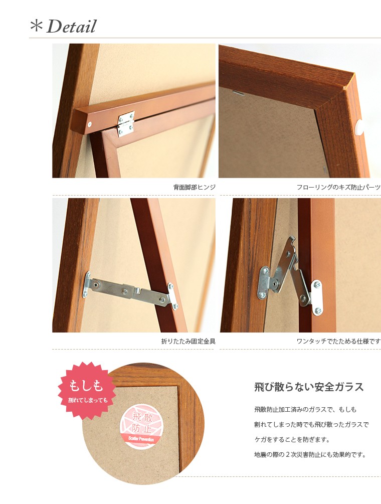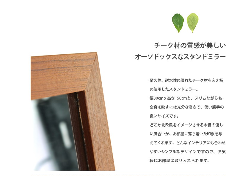耐久性、耐水性に優れたチーク材を使用したスタンドミラー。 ・金具開閉式 |