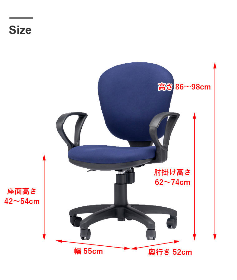 (約)幅55cm x 奥行52cm x 高さ86〜98cm (座面高42〜54cm) |