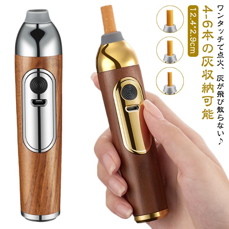 ワンタッチで点火、灰が飛び散らない? 4-6本の灰収納可能 外側は温もりのある天然木を厳選、内部はアルミ合金を採用しており、耐久性に優れ、断熱性能もあり、お手入れ簡単な携帯型灰皿。最大4-6つのたばこの灰を収納できます。 スタイリッシュで高級感のあるデザイン、コンパクトサイズで外出する時はポケットやカバンなどをサッと入れることができます。アウトドア、通勤、車用、温泉、プール、野外等、シーンを選ばずお使いいただけます。 3つのシリコンノズルが付属で、市販のタバコはほぼ対応できます。 使用する際はタバコを携帯灰皿に挿したら、ワンタッチボタンで着火して、そのまま使えるからとても便利です。 灰が飛び散らないから、車内はいつもきれいに、デスクワークやゲーム中のタバコも灰が飛び散る心配なし、存分にゲームや仕事に没頭できます。 お手入れが簡単。底キャップを外して、収納しているタバコの灰や吸い殻を簡単に捨てられます。 高級感漂う携帯灰皿、父の日、誕生日、敬老の日、バレンタインデーなどのプレゼントや贈り物としてオススメです。 | |