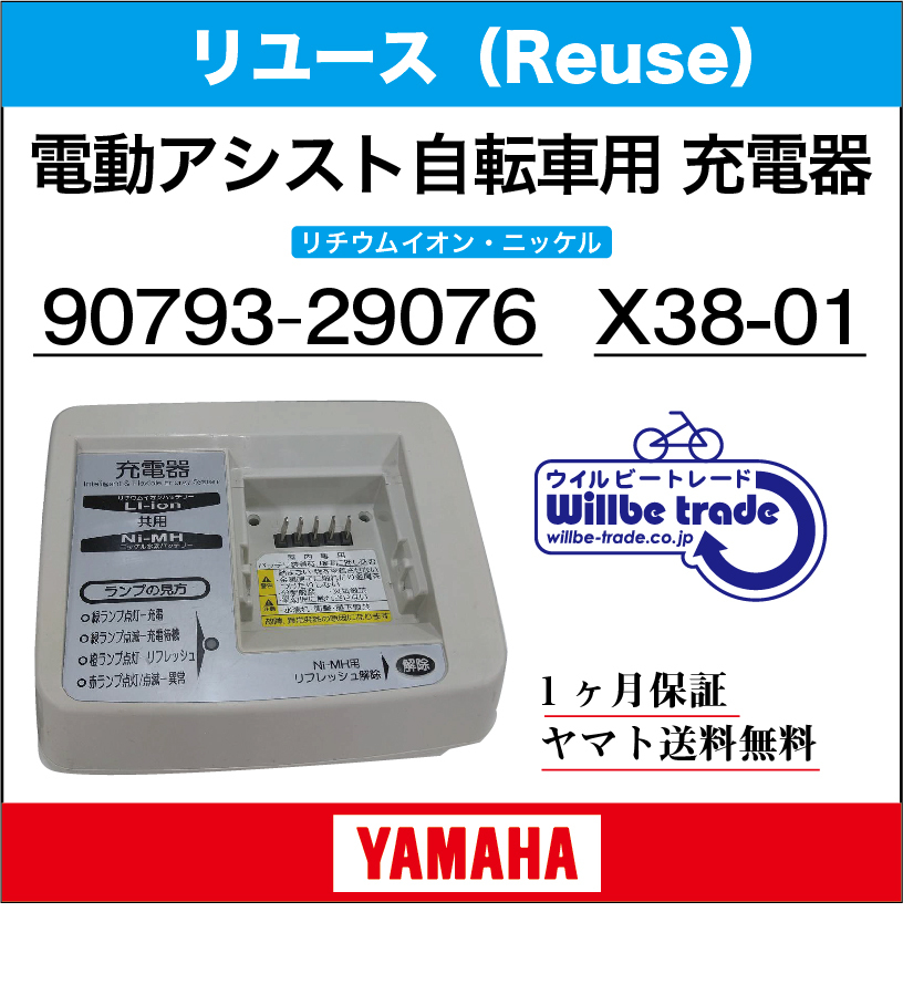 電動自転車 バッテリー充電器 ヤマハ YAMAHA 90793-29076(ニッケル水素・リチウムイオンバッテリー兼用)リユース品
