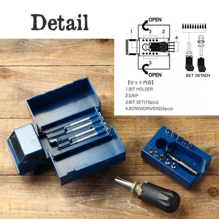 ◆ご注意 ・本製品は玩具ではありません。お子様の手の届かないところでご使用・保管ください。 ・本製品は小さな部品が含まれます。幼児やペットの誤飲には十分ご注意ください。 ・燃えやすいもの、可燃物の近くでは使用しないで下さい。火災の原因となります。 ・製品の構造上、鋭利な部分がございますので使用・持ち運びの際はご注意ください。 ・本製品を落としたり、強い衝撃を与えないで下さい。 ・本体・工具に割れ・欠け・摩耗・変形が見られる時は、使用しないで下さい。 ・本製品は、非絶縁工具です。電気の通じた回路や箇所でのご使用はお止め下さい。 ・本体を開閉の際は中身が飛び出す恐れがございますので十分ご注意ください。 ・汚れた場合は中性洗剤を含めた柔らかい布でふき取って下さい。 ・金属部分は錆びる場合がございます。使用保管の際には十分ご注意ください。 ・出来る限り実物に近いお色で画像を掲載しておりますが、PCモニターなどの環境等により、若干異なる場合がございます、予めご了承ください。 |