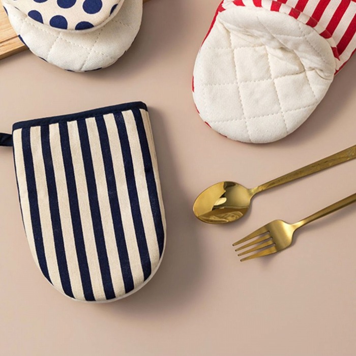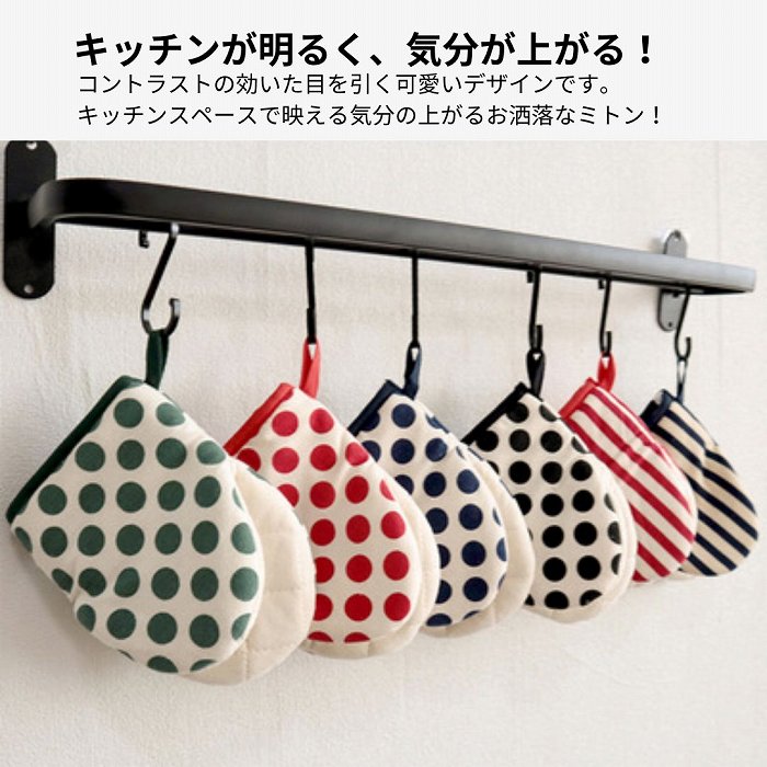 鍋つかみ おしゃれ 耐熱 ミトン かわいい なべつかみ 鍋掴み 使いやすい オーブンミトン キッチンミトン ドット ストライプ 厚手 短め