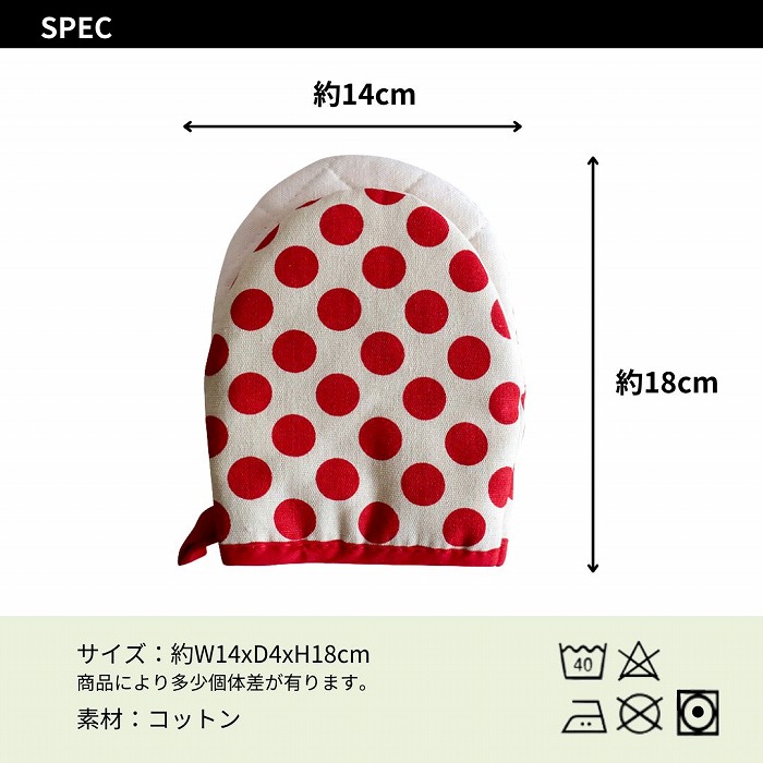コントラストの効いた目を引く可愛いデザインです。 キッチンスペースで映える気分の上がるお洒落なキッチンミトン! 着脱が簡単でスパッとはめることが出来、手にもフィットしやすく使いやすい、短めのショートサイズです。 ループが付いているので見せる収納もできます。可愛いので掛けておくだけでキッチンが華やかに感じられます。 洗濯機でお洗濯できるので、いつも清潔に使うことが出来ます。 ※同柄2枚セットの販売です。 |