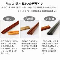 5種類の天然木を使用した銘木箸の10膳セットです。 栗、紫檀仕上、黄楊、黒檀仕上、鉄刀木の5種類の厳選した素材を使用し、一本一本手塗りで塗られたお箸は、素材を生かした素朴な質感に仕上げています。手に馴染み、持ちやすく、温かみを感じる。木製の優しい質感が日々の暮らしに溶け込みます。 六角箸、八角箸、彫技箸(削り)の3デザインからお選びいただけます。 |
