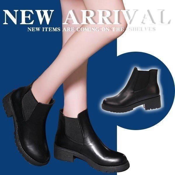 サイドゴアショートブーツレディースショート丈2タイプ秋冬靴厚底ローヒール太ヒール黒のみ痛くない歩きやすい防滑シンプル
