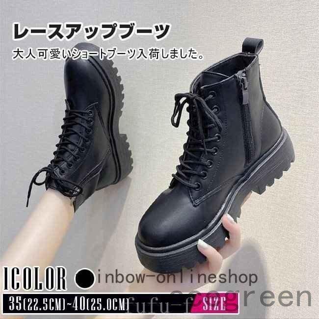 ショートブーツレディース黒ショート丈コンヒール無地厚底レースアップブーツ編み上げブーツ美脚おしゃれカジュアルファスナー付き大きいサイズ