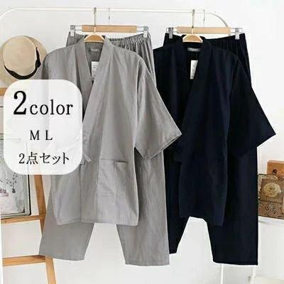 作務衣パジャマルームウエアメンズ和風パジャマ上下2点セット七分袖と長ズボンの上下2点セットメンズナイトウエア薄手ML春