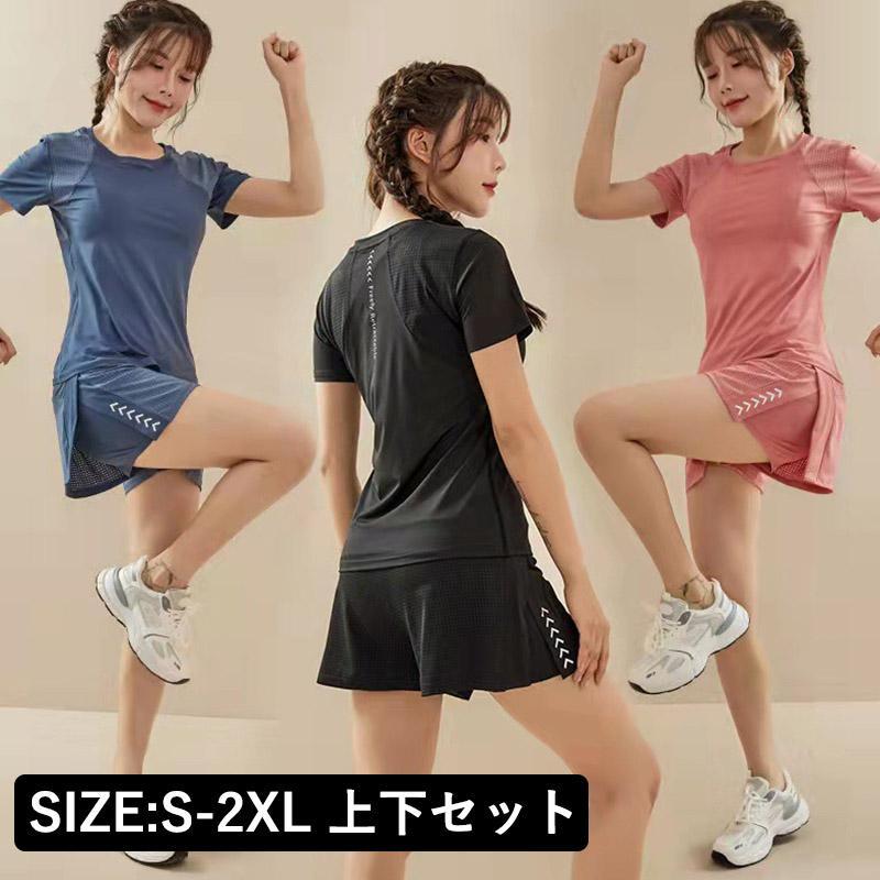 スポーツウェア 上下セット 半袖 レディース トレーニングウェア ランニングウェア ヨガ ウォーキング ジョギング ランニング ジム 速乾 通気