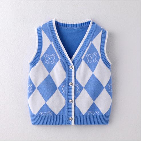 春秋冬 ニット キッズニット ジュニア 子供用セーター カジュアルボタンフロント洗える 男の子 防寒 インナー ニットチョッキ