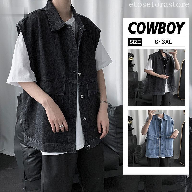 【特価】デニムメンズ デニム ダウン ノースリーブ カーゴ アウター ボタンダウンジャケット ジャケット ブルゾン スリム 秋 仕事着