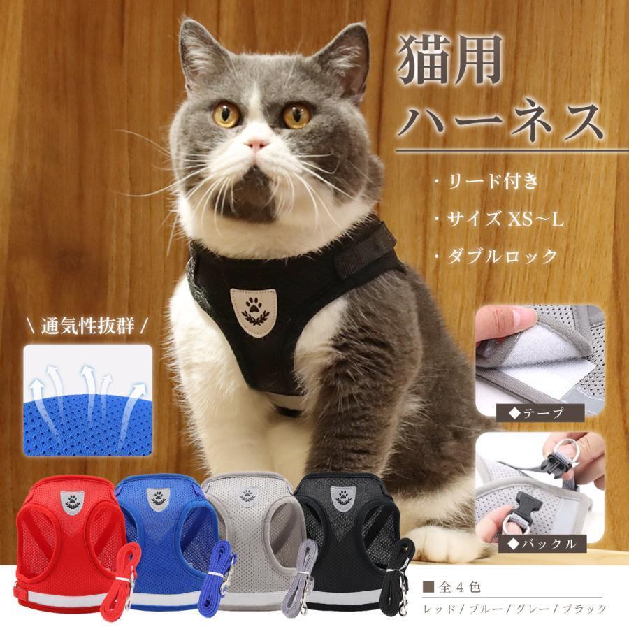 猫 ハーネス リード 外れない 散歩 おしゃれ メッシュ ダブルロック 猫用ハーネス ウェアハーネス 胴輪