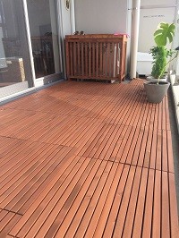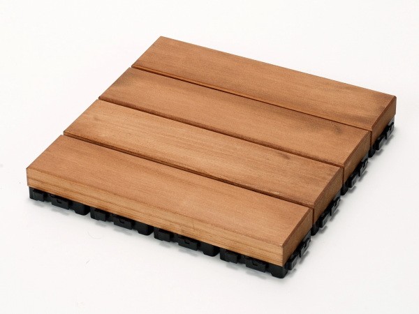 樹脂ジョイント付き 色:チーク 重量:約1.2kg 1平米あたり27,500円(税込) 素材:高耐久の米国産ヒバ材 12枚以上1枚単位で必要数購入可能です。
