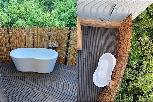 ウッドデッキは匠が手作りしています。厚みのある無垢材を贅沢に使用しているため、重厚感・高級感があり、ガタつきません。また、米国産ヒバ材は大変腐りにくく、天然木製でありながら高耐久。表面は丁寧にサンダー掛けしているため、素足でお楽しみいただけます。