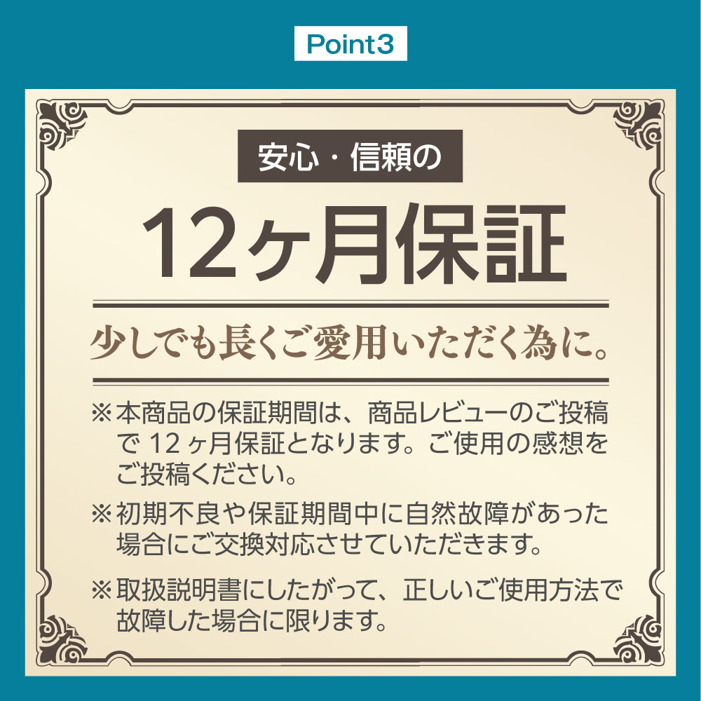 | 製品保証 | 12ヶ月間 |